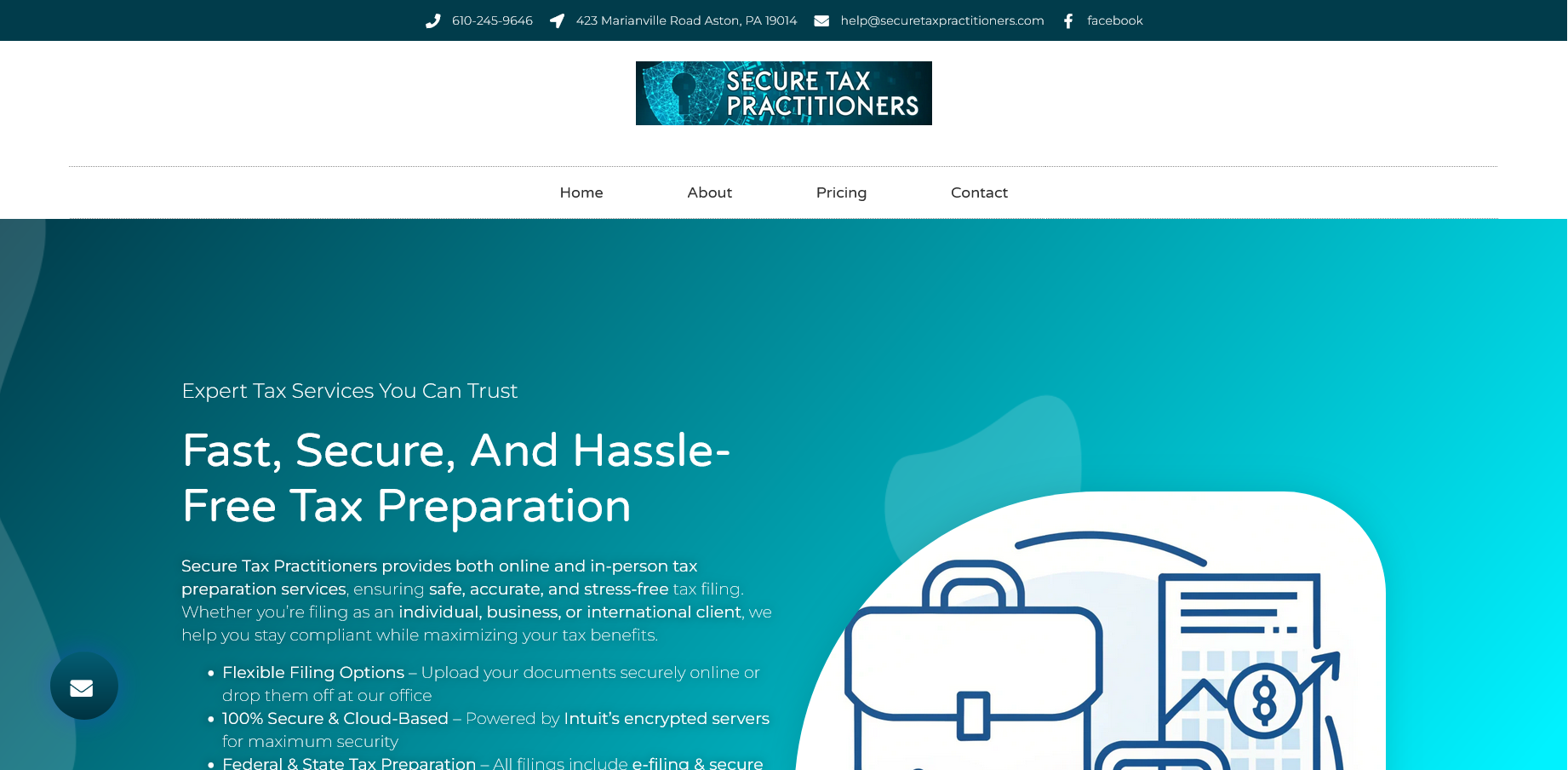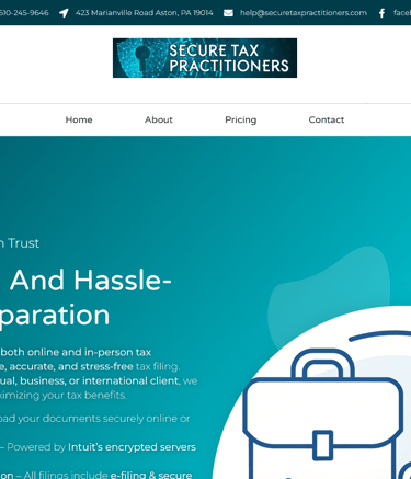 Modern look for local tax preparation and bookkeepers Secure Tax Practitioners.
