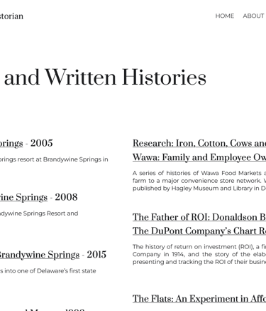 In addition to full website builds, I’ve contributed to ongoing website updates for New Castle County Vo-Tech('20-'25) and Superior Glass & Mirror ('25-'26), designing and maintaining content for many pages beyond the homepage.